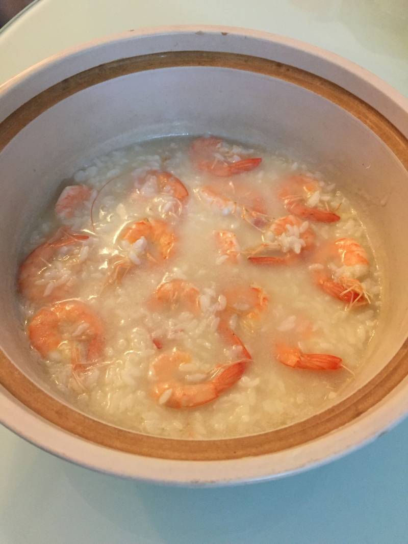9:煮至粥粘稠放入虾子