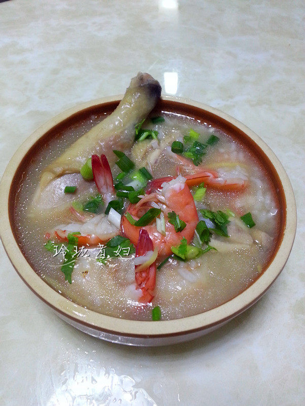 鲜虾土鸡砂锅粥