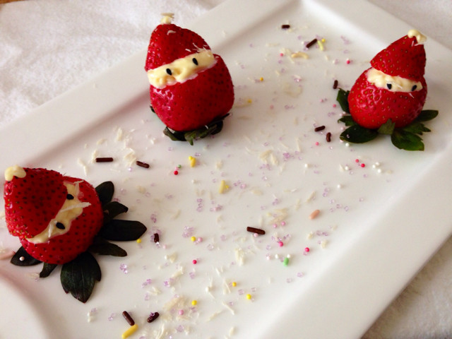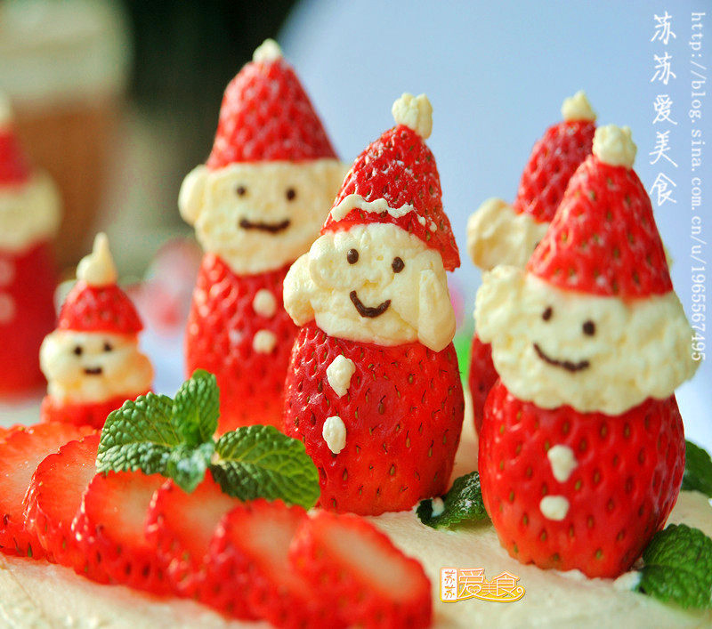 12:草莓做成圣诞小人人,也是芝麻做眼睛。