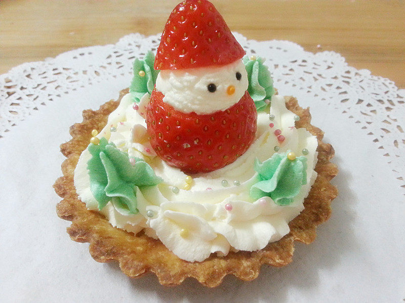 卖萌的圣诞雪人草莓挞!