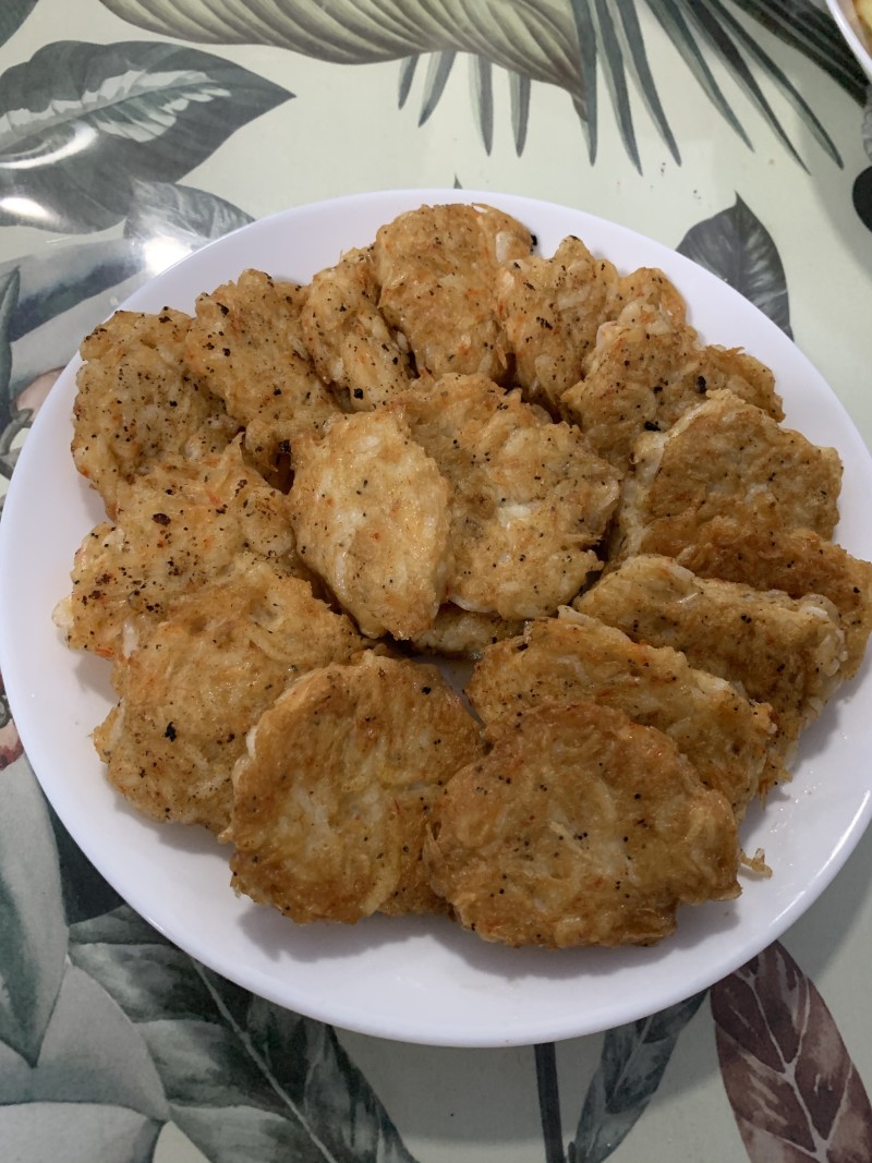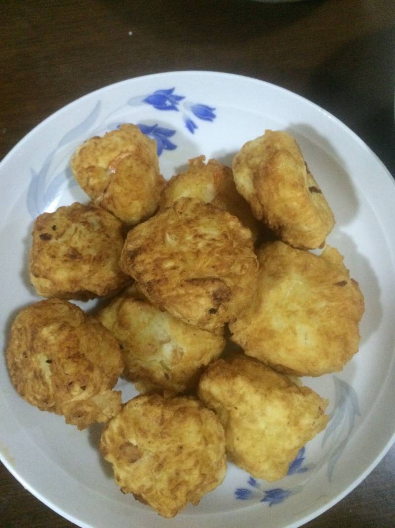 5:下锅,小火煎至金黄,美味即刻呈现。(不必煎太久,否则会影响口感和色泽)可蘸番茄酱等,bytheway,鱼儿认为什么都不蘸的口味最棒!