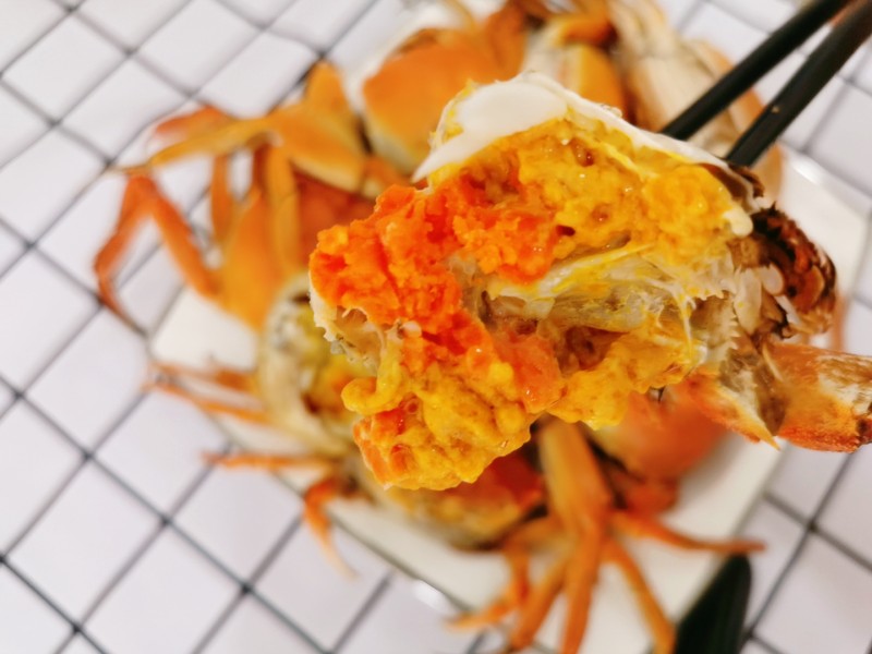 1:新鲜活蟹两个、蟹壳朝下蒸10分钟