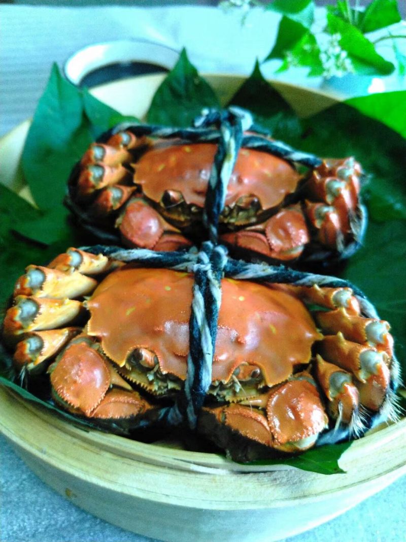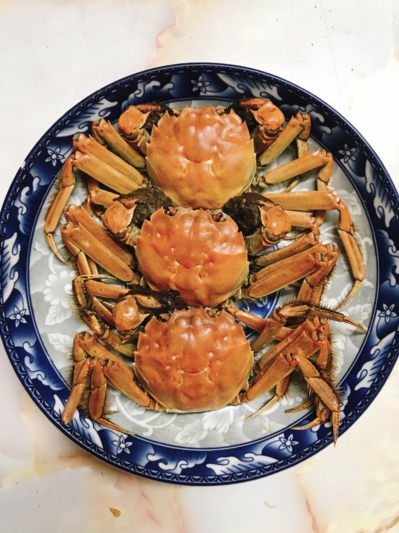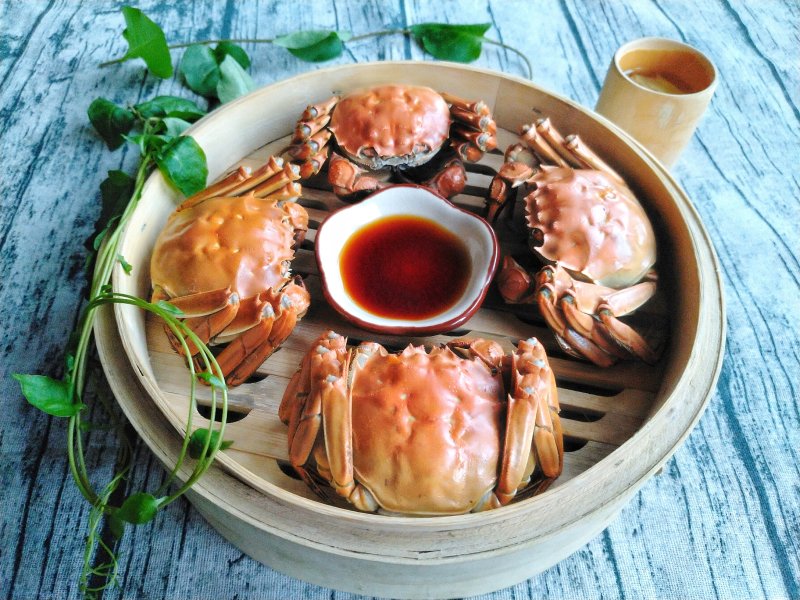 4:美味的大螃蟹,可以食用了,直接吃就可以,为了驱寒可以配姜末和醋。