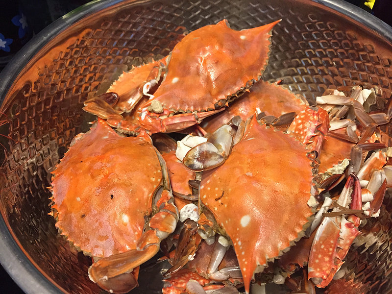 1:趁假期休息,和妈妈一起去码头上买的活螃蟹。螃蟹现货才能真正吃出来螃蟹的鲜味。放在盆里洗一洗,用筷子搅一下。螃蟹钳上的皮筋一定要去掉,不然后又橡胶的味道,影响口感。(图片用手机拍的,比较暗)