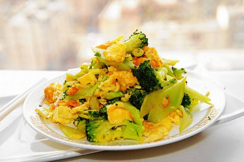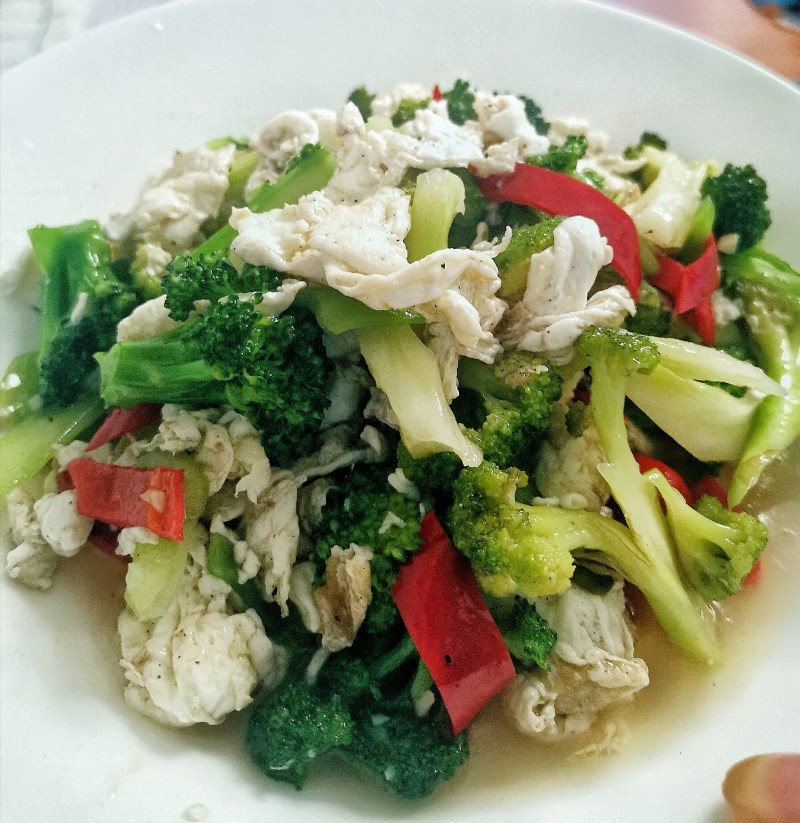 5:最后倒入鸡蛋,翻炒均匀就可以出锅了,西兰花和木耳都已经焯过水了,所以很容易炒熟。