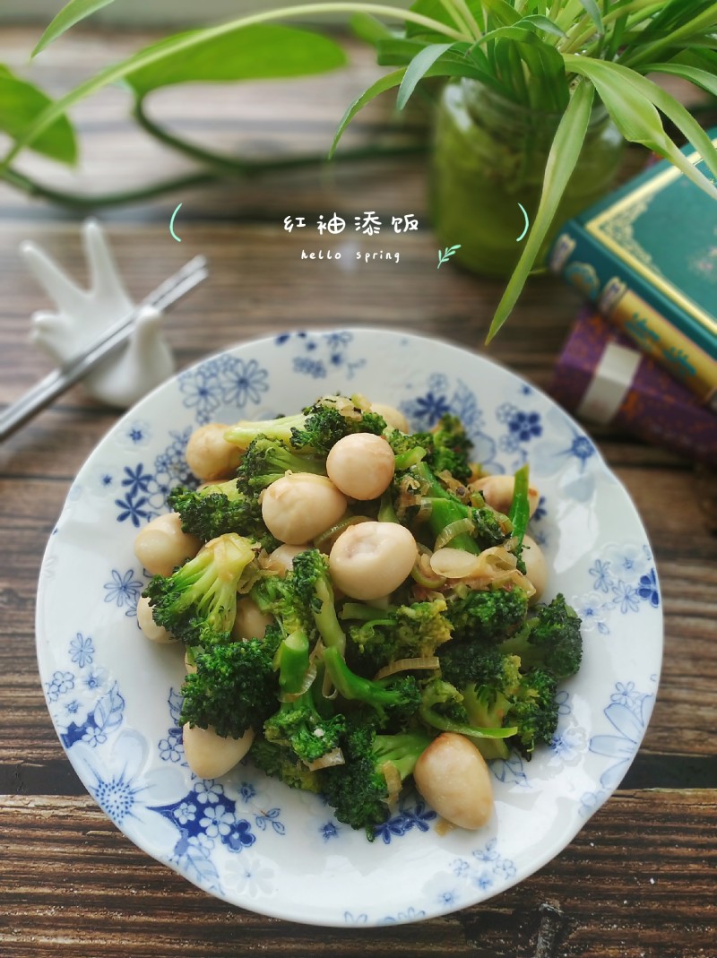 3:倒入西兰花,加些盐,香油翻炒入味即可。