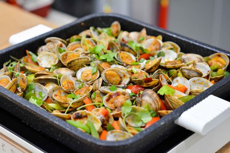 5:随后放花蛤拌炒