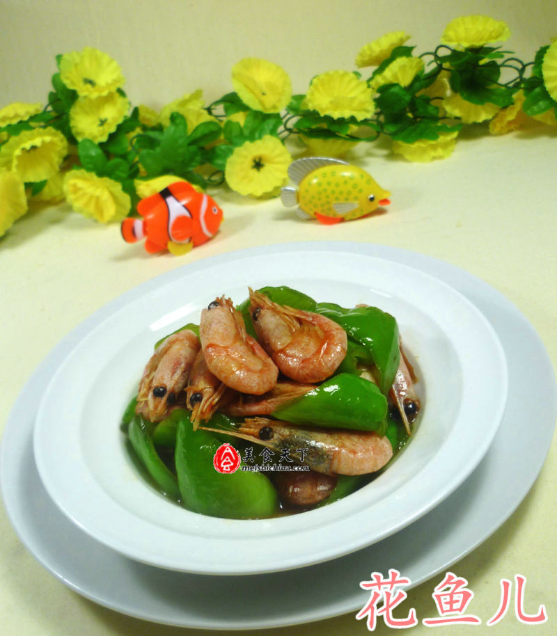 1:材料:青椒、北极甜虾
