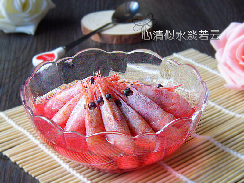 1:准备材料:将北极虾在常温下解冻,解冻后的北极虾冲洗干净沥干水分