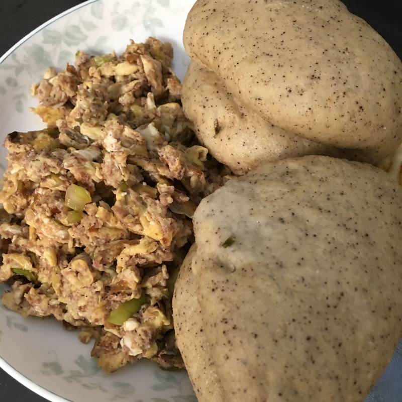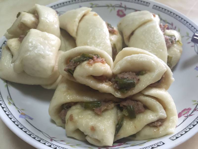 温开水150g;肉约100g;糖3g;酵母3g;盐5g;面粉300g;葱花适量;