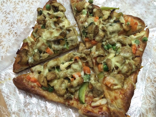 9:蔬菜鸡肉全部要提前在锅里炒下去掉过多水分,放入面饼上