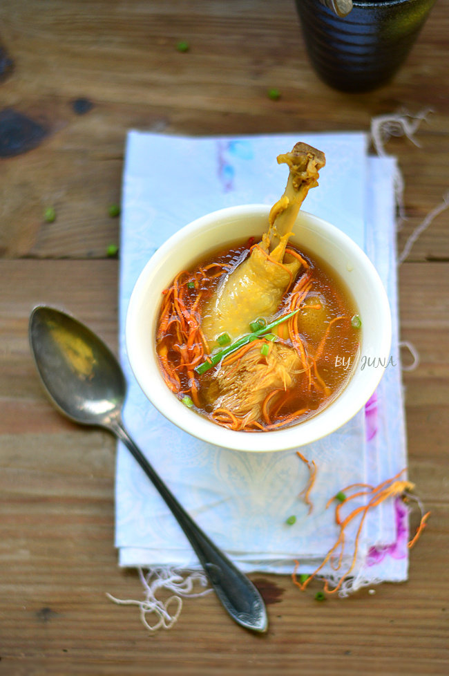 9:因为是新鲜的虫草花,所以继续煲10分钟即可。最后按口味调入盐,放香菜提味即可。