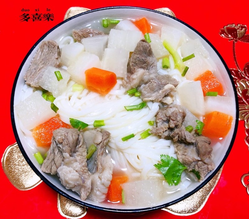 11:羊肉萝卜汤淋在面条上就大功告成了。