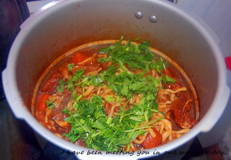 11:把面条煮在汤里。