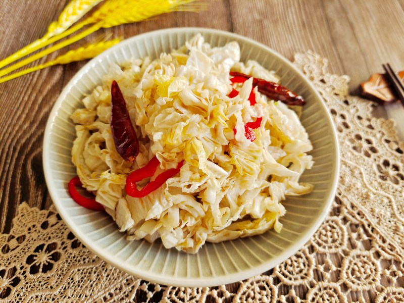 1:白菜切丝备用(建议多用叶子部分,如果只取白菜心,口感更好)。