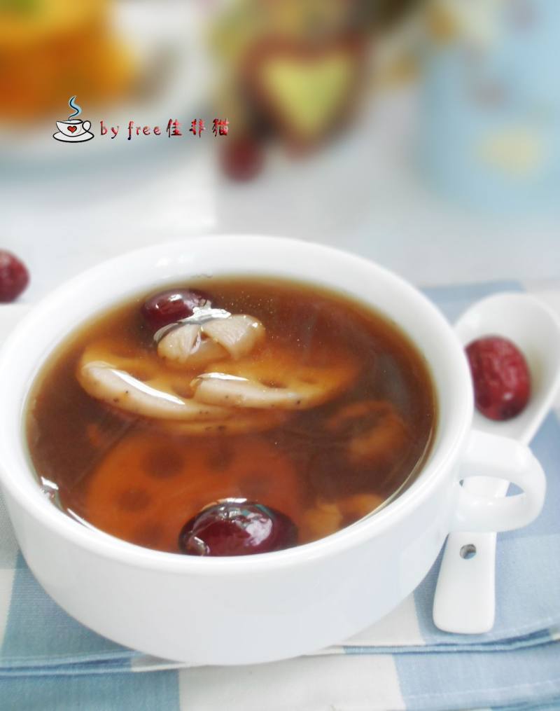 鲜莲藕300克;红枣10个;桂圆肉10个;