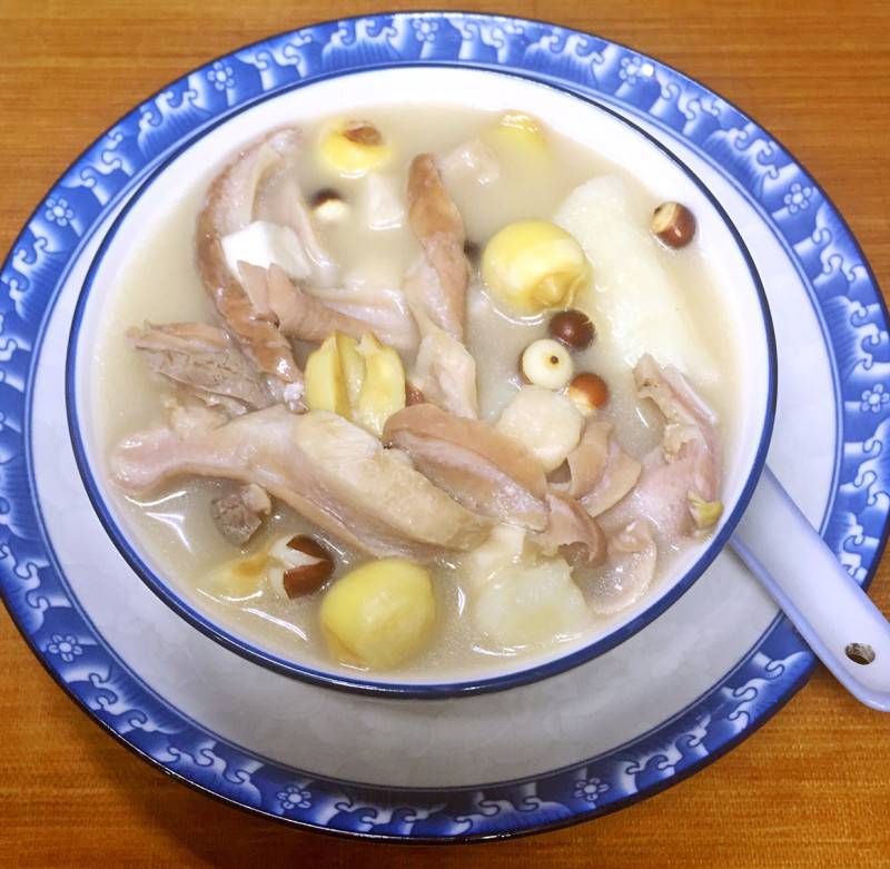 不容易煮烂的食材,提前浸泡可缩短煮粥时间。煮粥最好一次性把水放足,掌握好水、食材的比例,不要中途添水,否则在粘稠度和浓郁香味上大打折扣。淮山可以用新鲜的代替口感更好,即是山药。