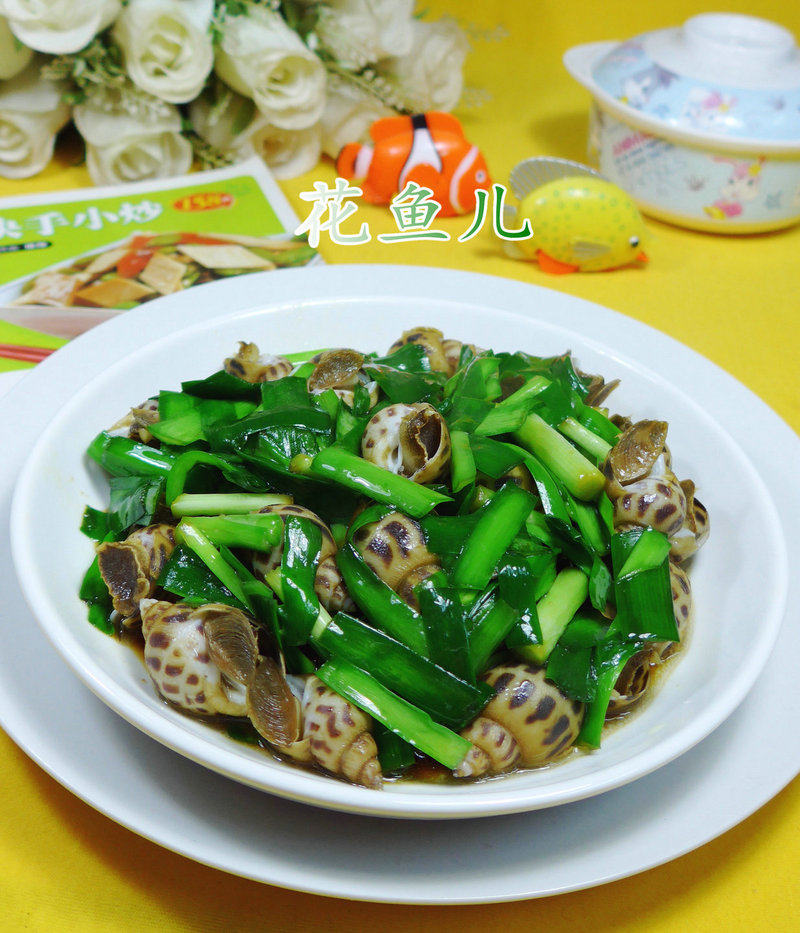 1:食材:花螺(已清洗)、韭菜(已清洗切段)