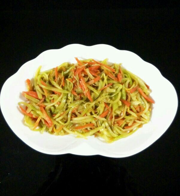 2:莴笋和胡萝卜切成丝