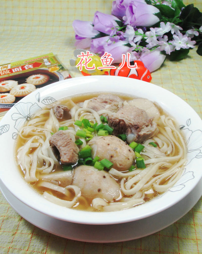 1:食材:面条、排骨(已清洗焯水)、香芋(已去皮洗净切开)、香葱