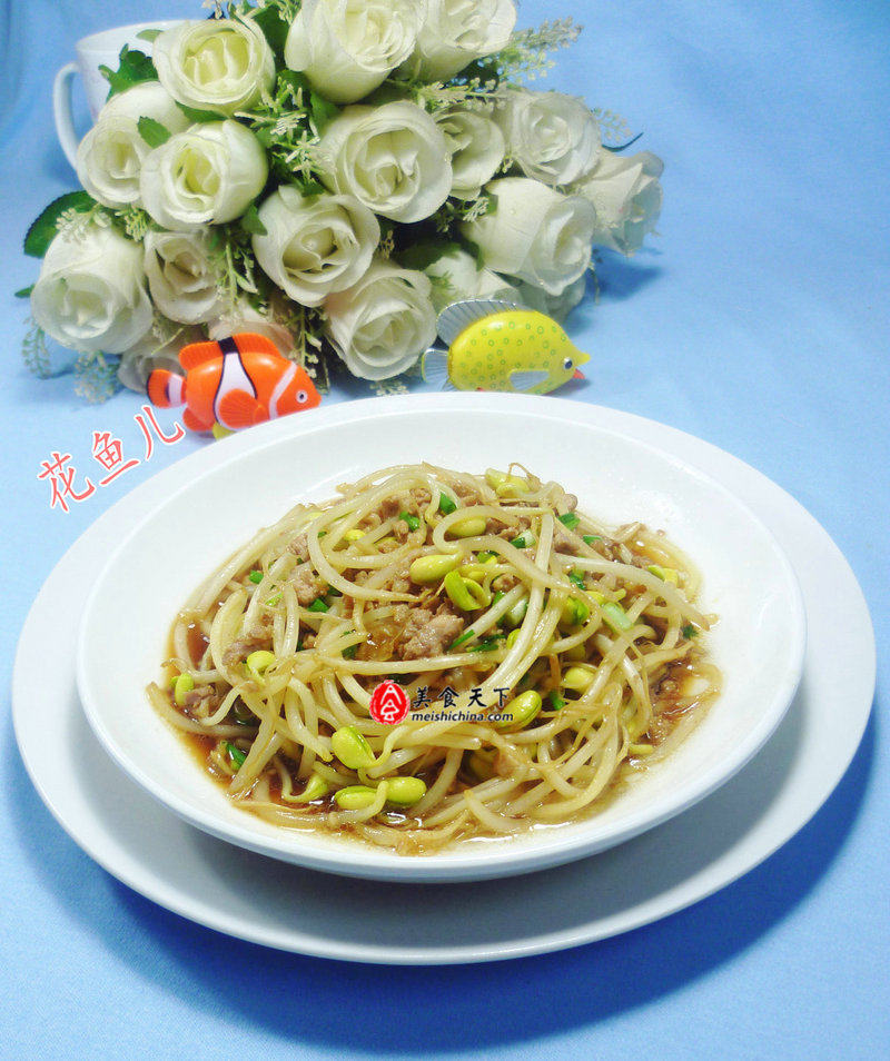 葱香肉末炒黄豆芽