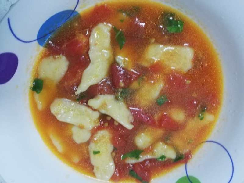 1:把番茄和青菜叶子洗净,番茄切小块,菜叶子切碎。