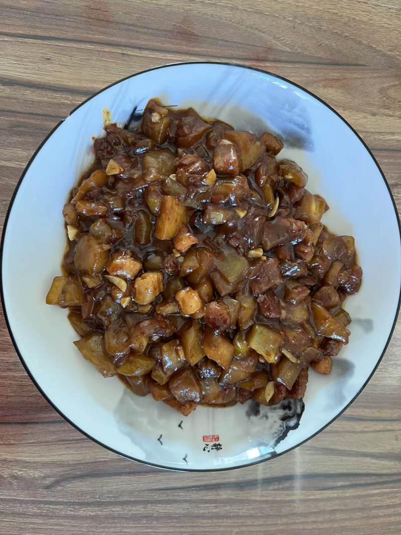 8:炒香之后加一勺黄豆酱,炒出酱香味。