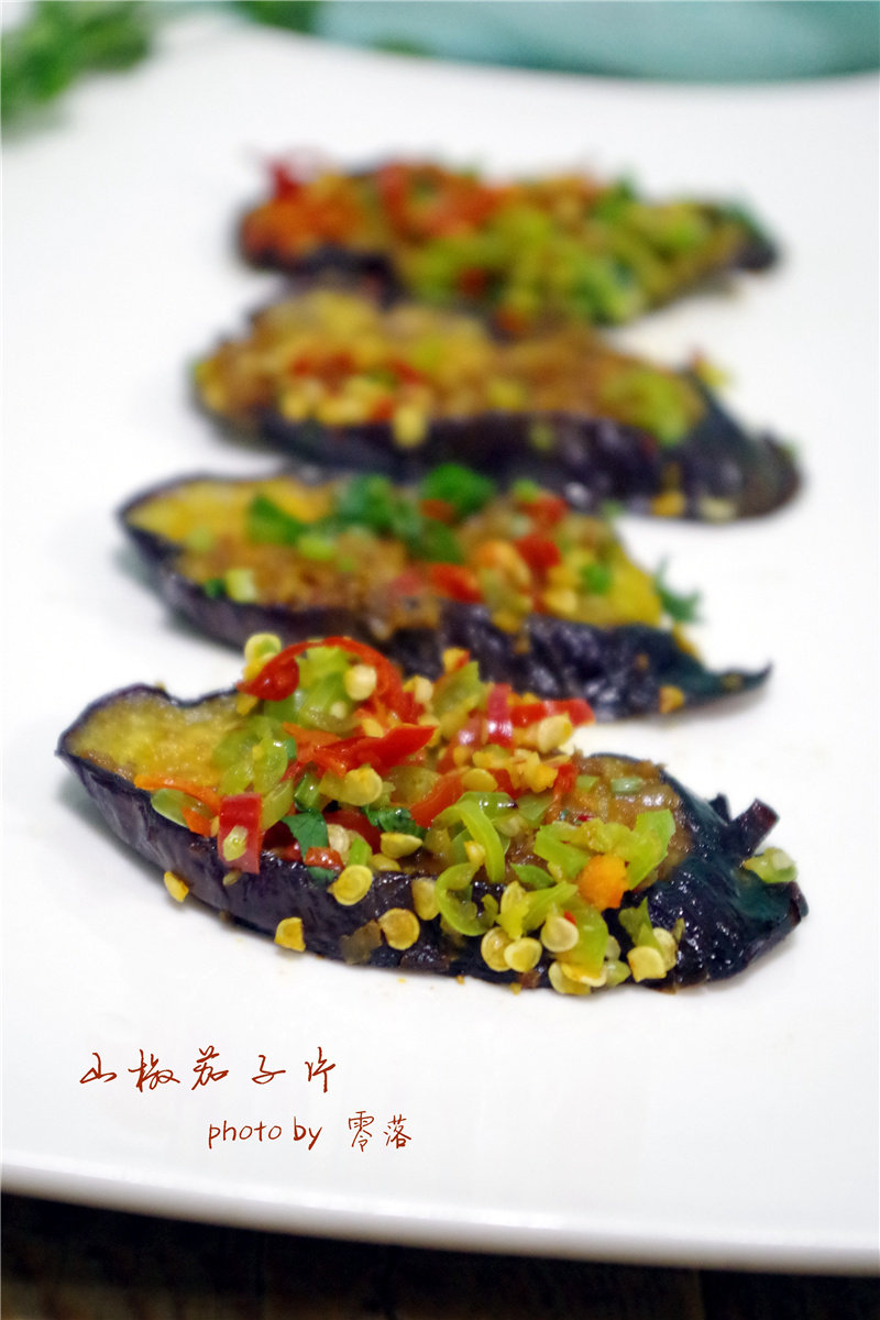6:程序完成后,在茄子片面上刷一层山椒酸菜辣酱;