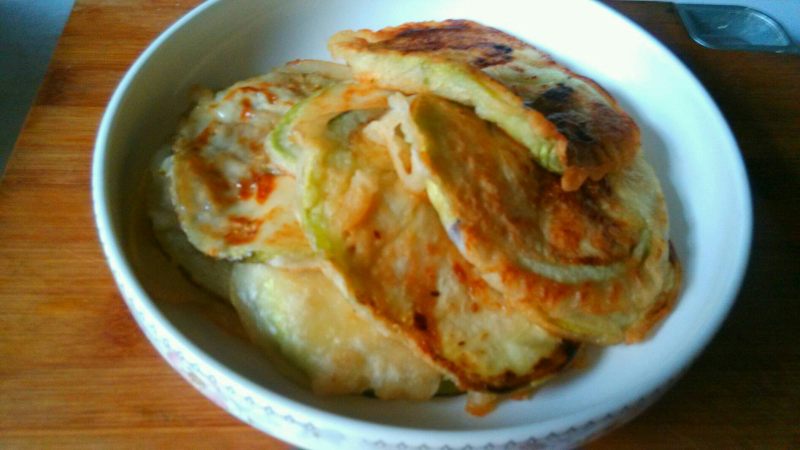 9:炸好的茄子片,可以直接吃,也可以蘸蒜泥吃