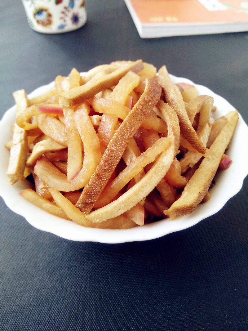 3:起油锅,香干入锅过油后盛出。