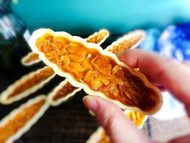 9:把杏仁糖片放入糯米船中。