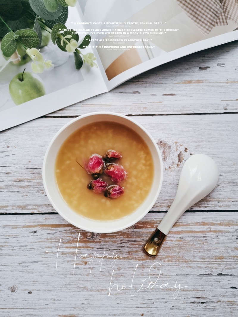 6:清甜养颜的玫瑰粥。