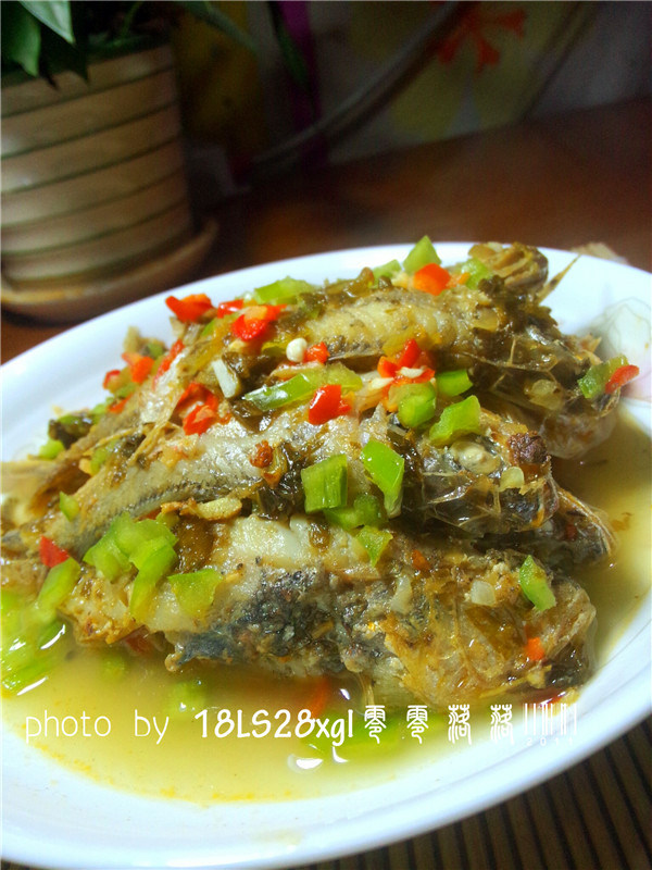 7:如图就是蒸好的酸菜蒸黄鱼,色泽美口感好。