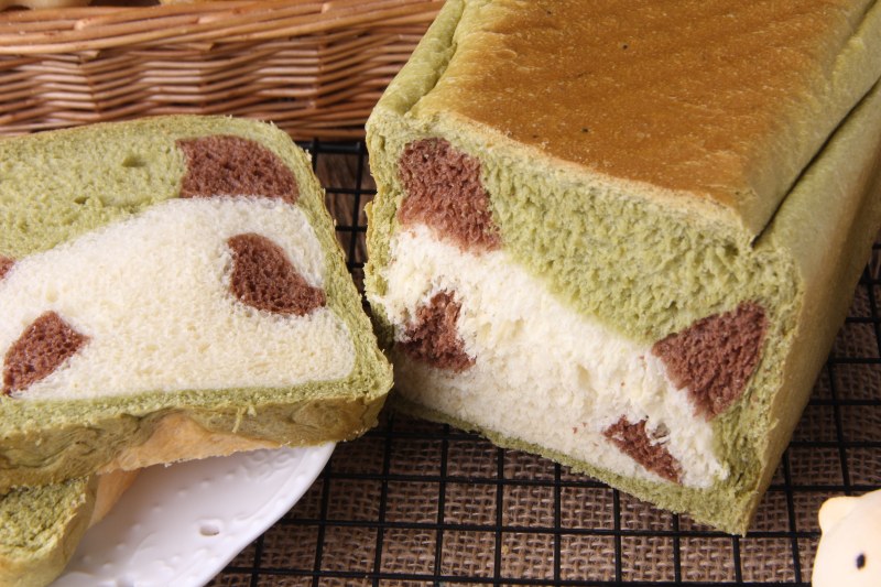 无盐黄油18g;酵母4g;抹茶8g,在10g热水中溶解;可可粉8g,在8g热水中溶解;