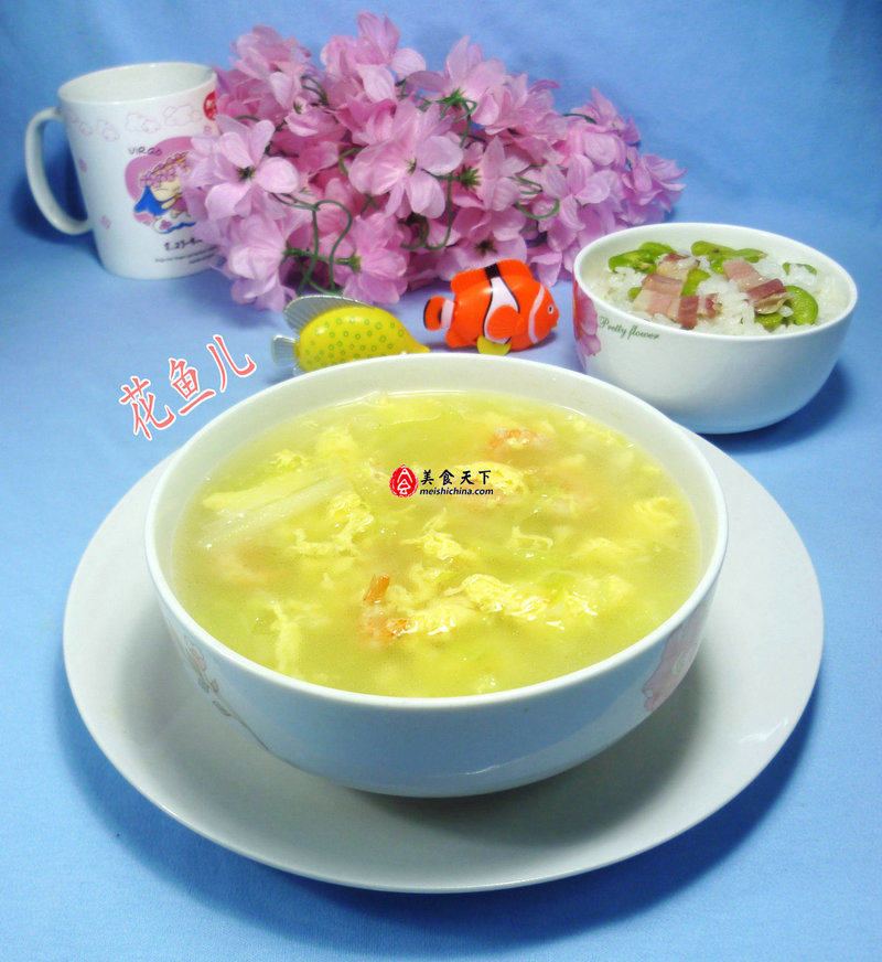 1:食材:白菜(已清洗切开)、鸡蛋(已打入碗中)、开洋(已泡)