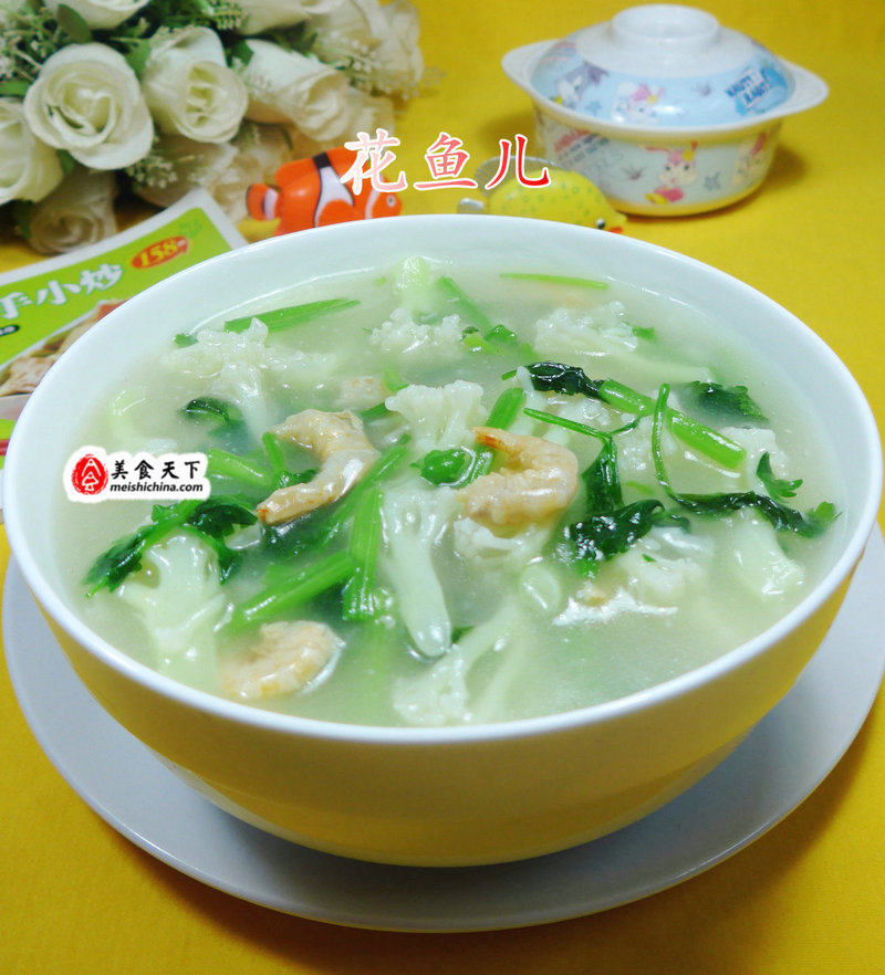 3:随后,加适量的清水煮开,煮至花菜熟软。