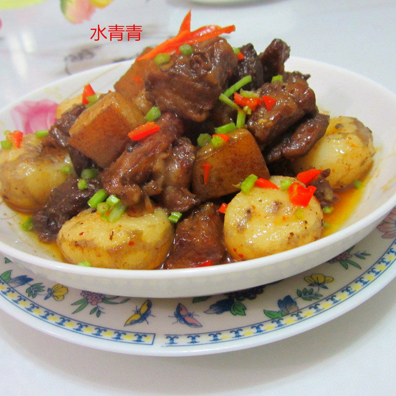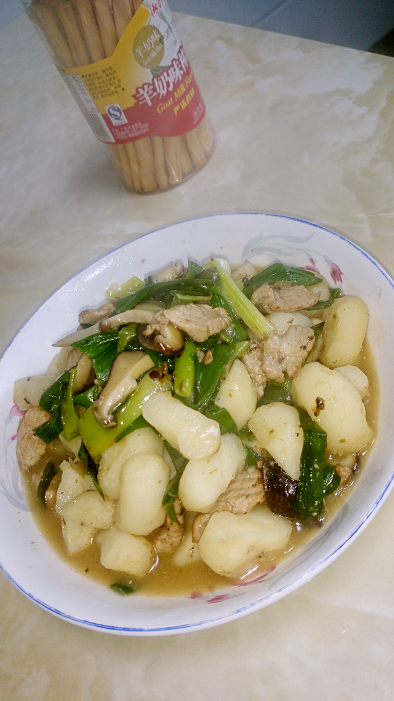 荸荠半斤;猪肉一小块;大蒜5根;香菇3朵;
