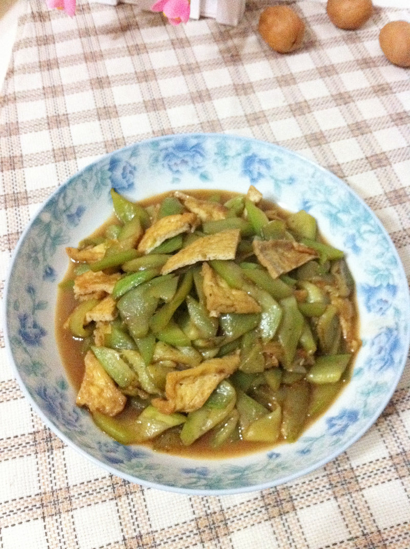 6:放入少许盐,老抽翻炒至丝瓜成熟即可。