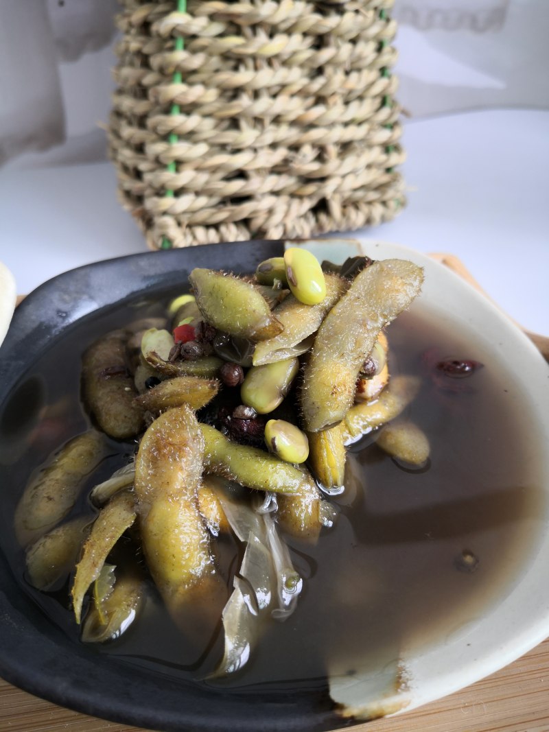 6:关火,毛豆先不捞出,继续泡在汤中,凉后捞出食用。如果能浸泡在汤中数几小时再食用,味道更棒