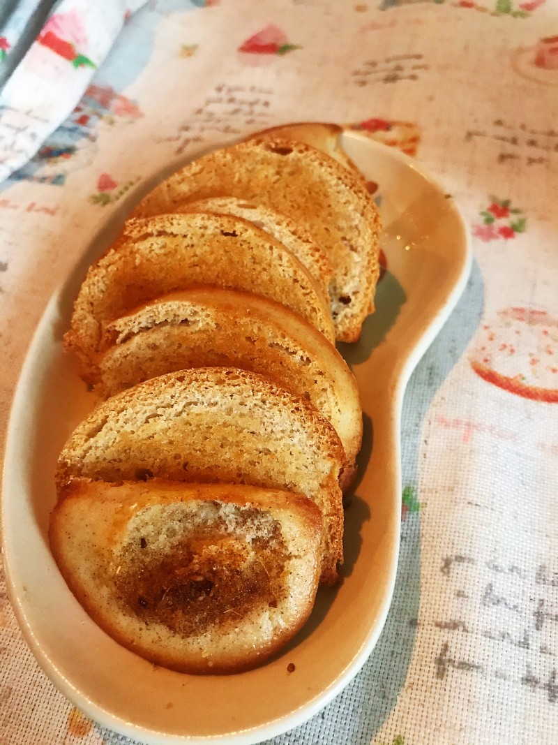 6:烤箱200度不需要预热,中层烤10分钟,金黄喷香的烤馒头片就好了。