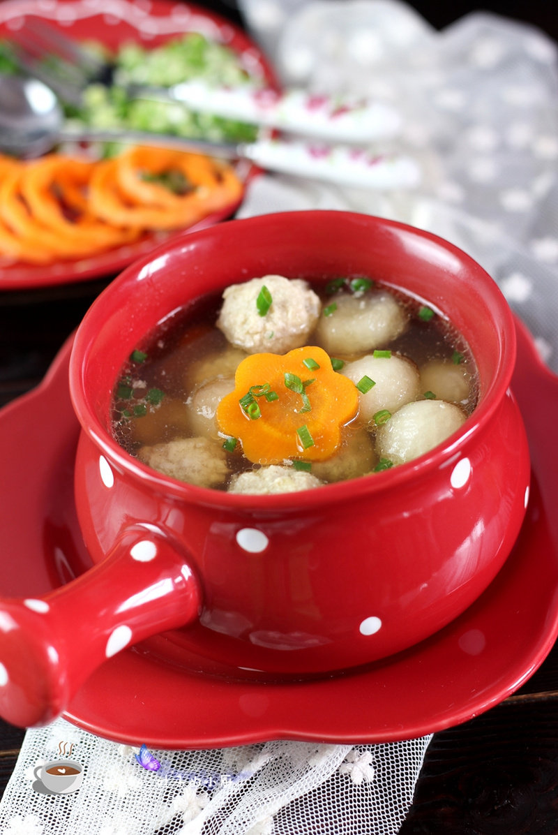 3:汤鲜味美,肉丸软嫩,开吃吧。