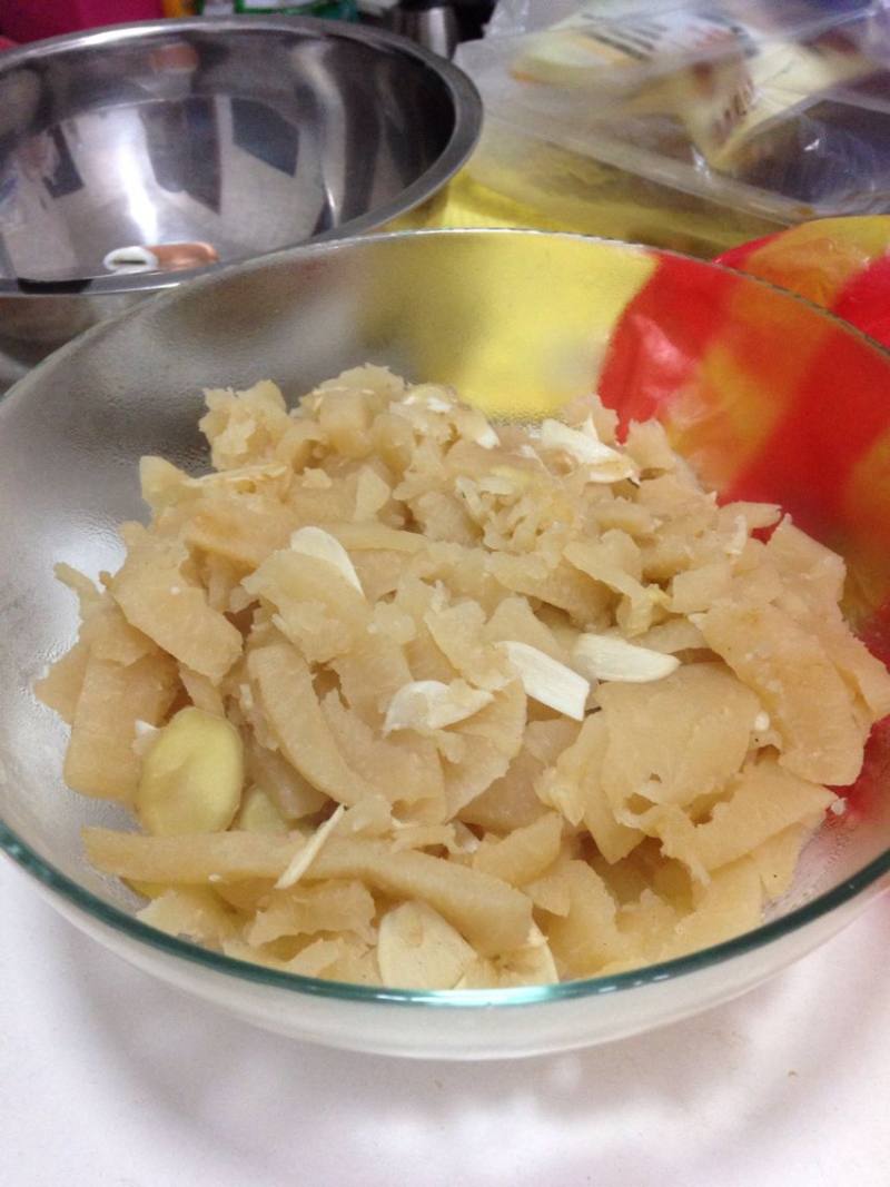 3:取用黄皮,切成1-1.5X6-8厘米的条。