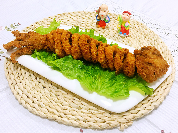 鱿鱼1只;鸡蛋液1只;面包糠适量;淀粉适量;