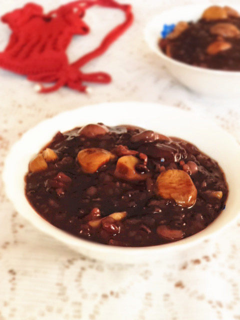 4:加入切碎的板栗,续煮20分钟即可。ps.也可以一开始板栗跟粥一起煮。