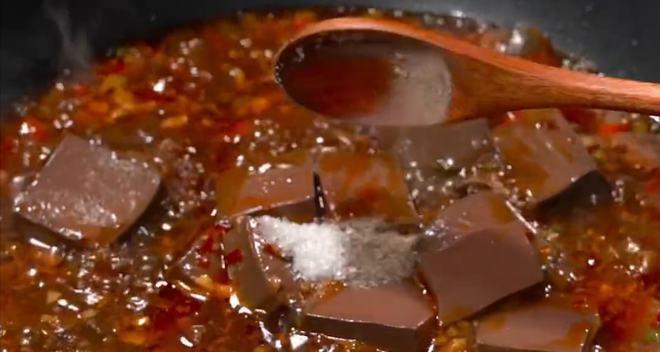 将锅盖盖上,用中小火焖煮约10分钟,直至猪血糕充分吸收佐料的味道。