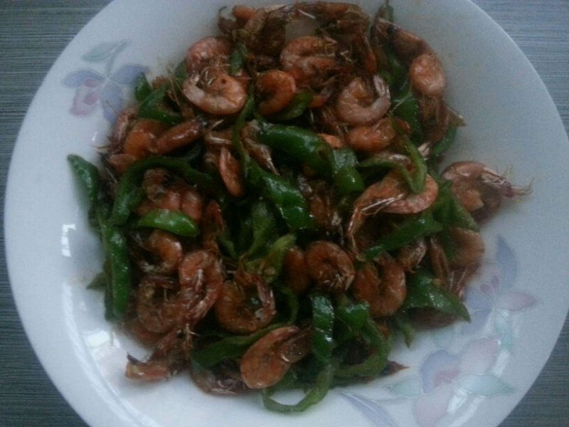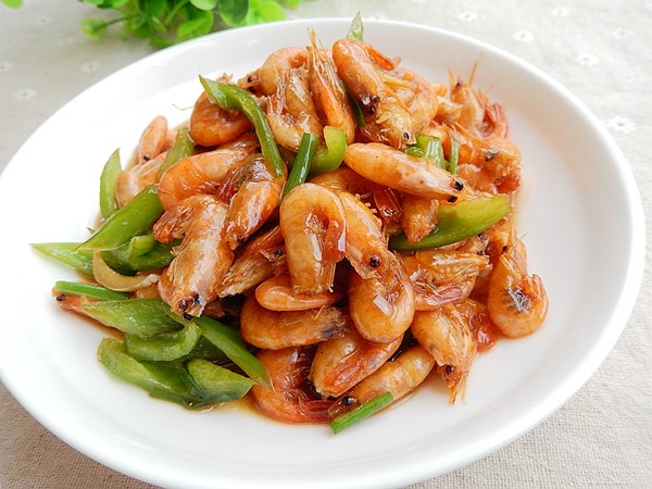 河虾500克;青椒2个;