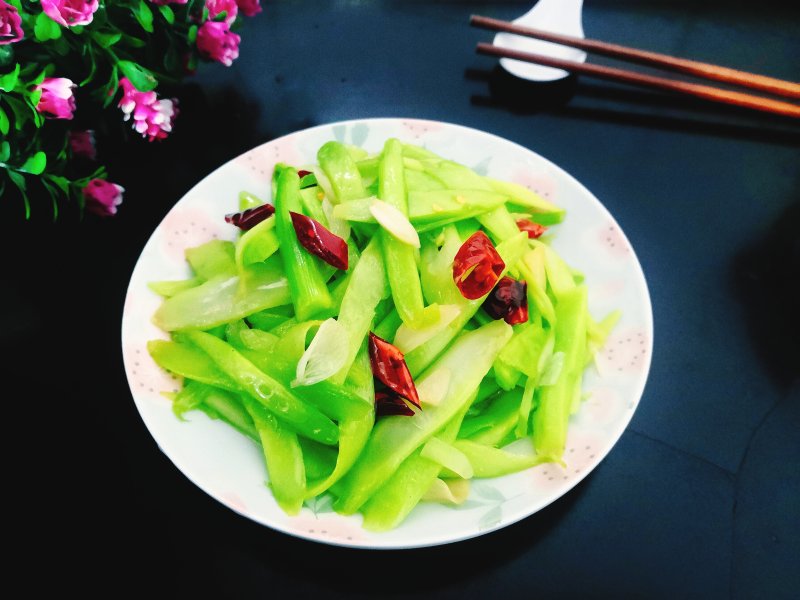 5:加入青椒丝翻炒一会加适量盐。