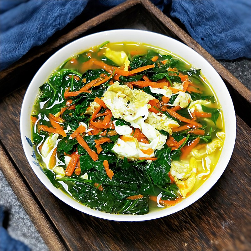 枸杞叶200g;鸡蛋2个;胡萝卜半截;