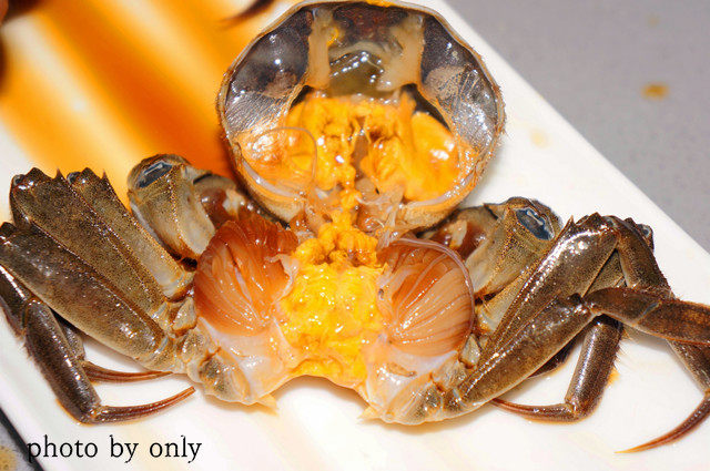 个人觉得这是一道既够档次又几乎没有任何烹饪技巧的菜,唯一需要注意的是,蒸蟹的火候不能过,如果蟹肉蒸老就可惜了。而蒸的时间按蟹的大小估计,我这只比较大,所以蒸了八分钟,注意哦。