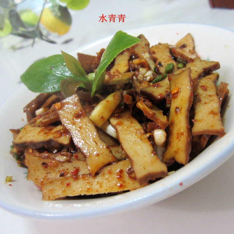1:豆腐干要有点底味,笔者先泡后压,调制泡豆腐的水,置一大碗放清水约1饭碗、生抽2大勺、老抽1大勺、五香粉1小勺,调匀;